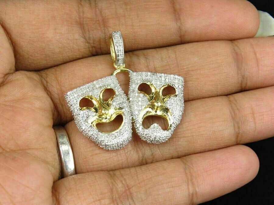1.50Ct Round Cut Moissanite Face Expression Pendant 14K Yellow Gold Plated
