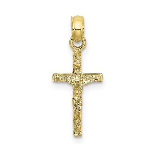 10k Yellow Gold Polished & Textured Finish 2D Tiny Crucifix Block Cross Pendant