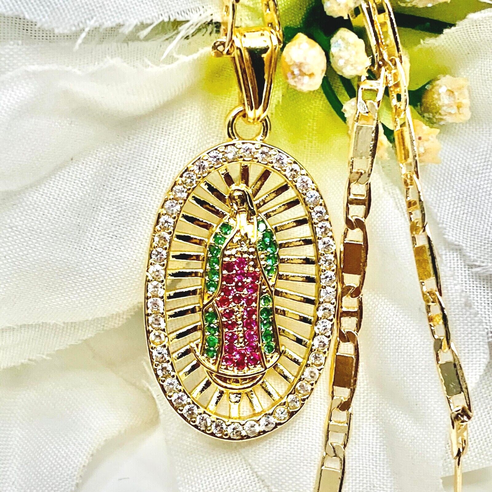 14K Gold Plated Virgin Guadalupe Pendant Necklace with Chain 20 Cubic Zircon #26