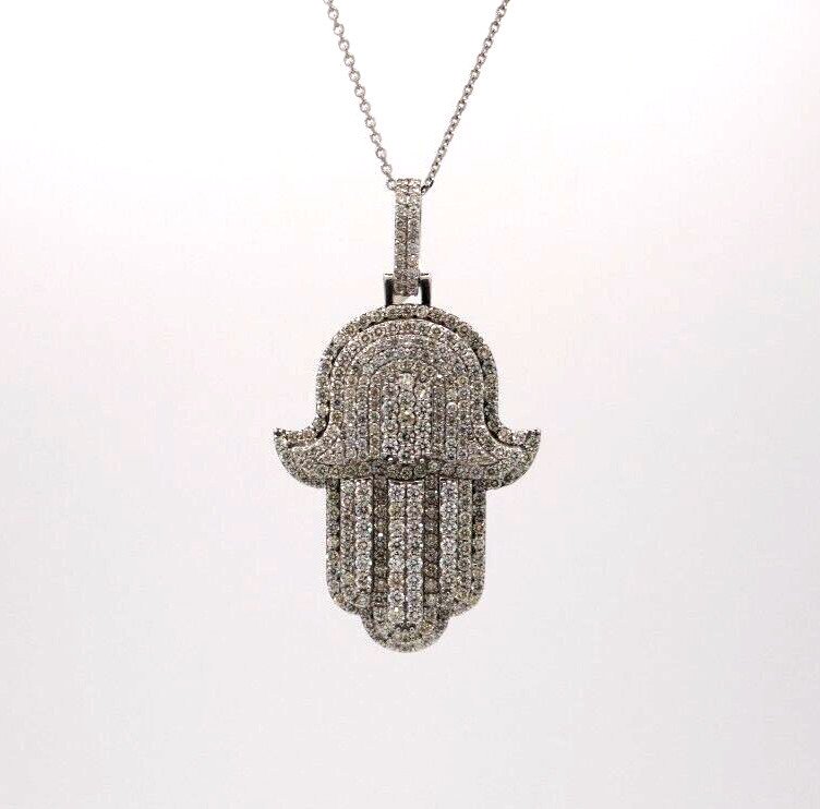 14K White Gold Hands of Hamsa Religious Charm Diamond Pendant