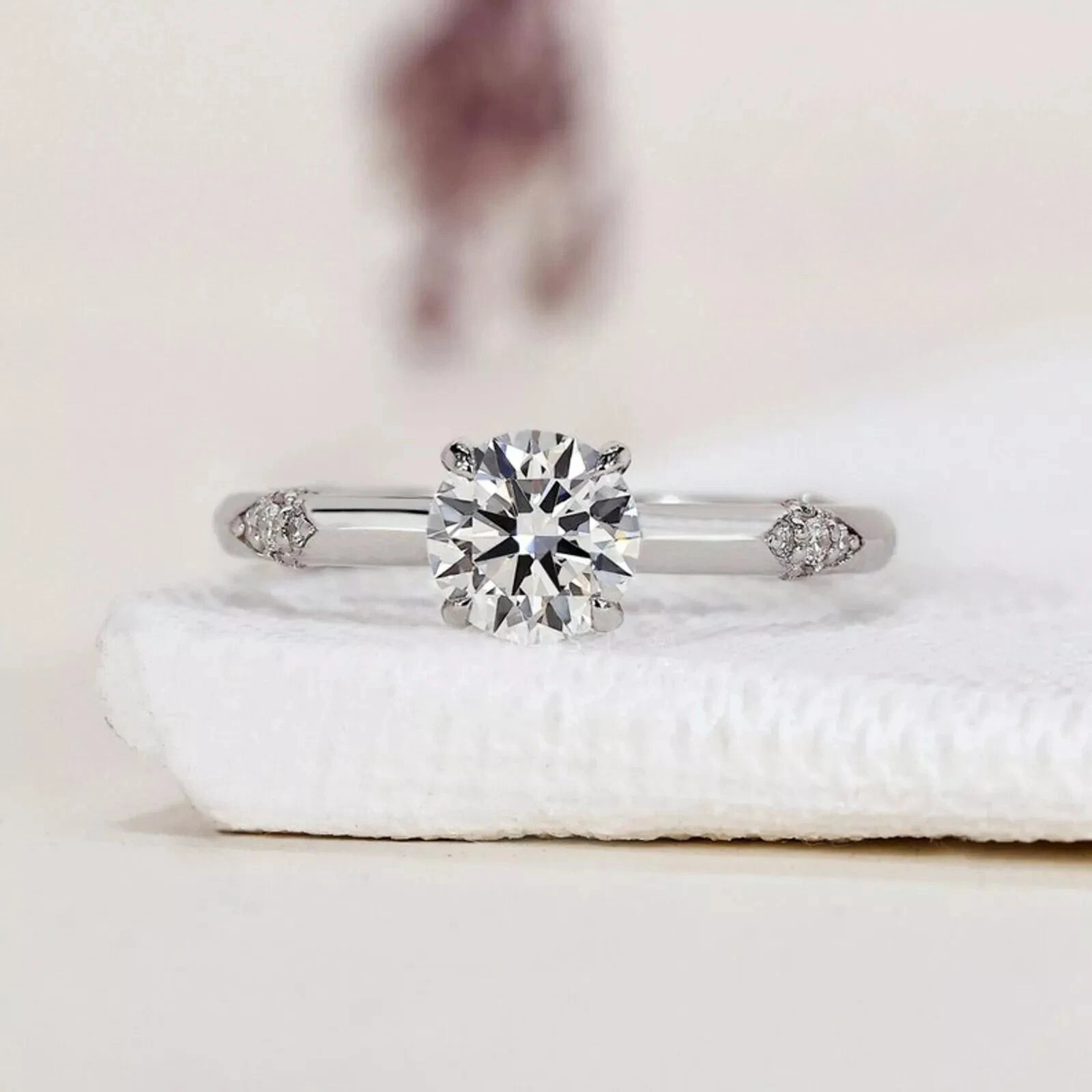 14K White Gold Moissanite Solitaire Engagement Ring Solid 1.50 Carat Round Cut