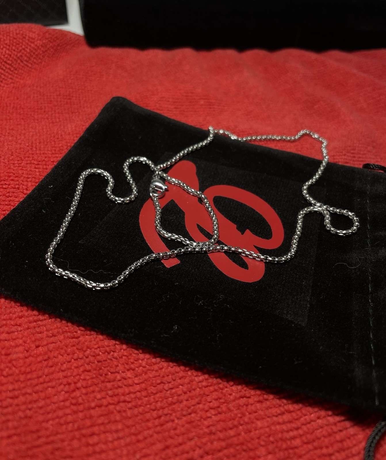 14K White Gold Steel Round Box Necklace Stainless Steel Rolo Chain 2MM 20 Inch