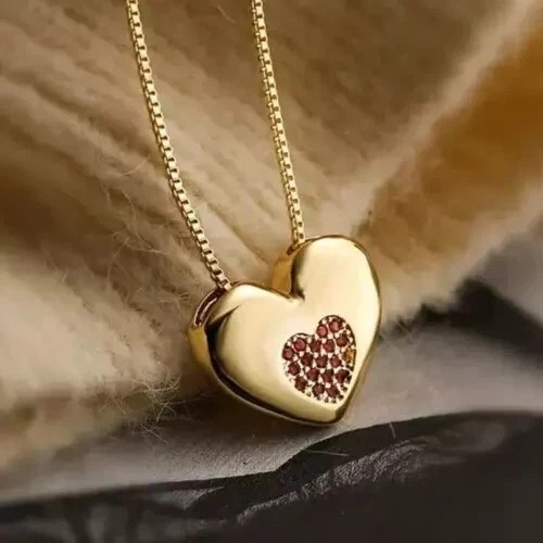 14k Yellow Gold Plated Heart Pendant Necklace 2 Ct Round Cut Simulated Ruby