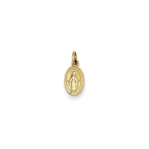 14K Yellow Gold Polished Blessed Virgin Mary Miraculous Medal Oval Charm