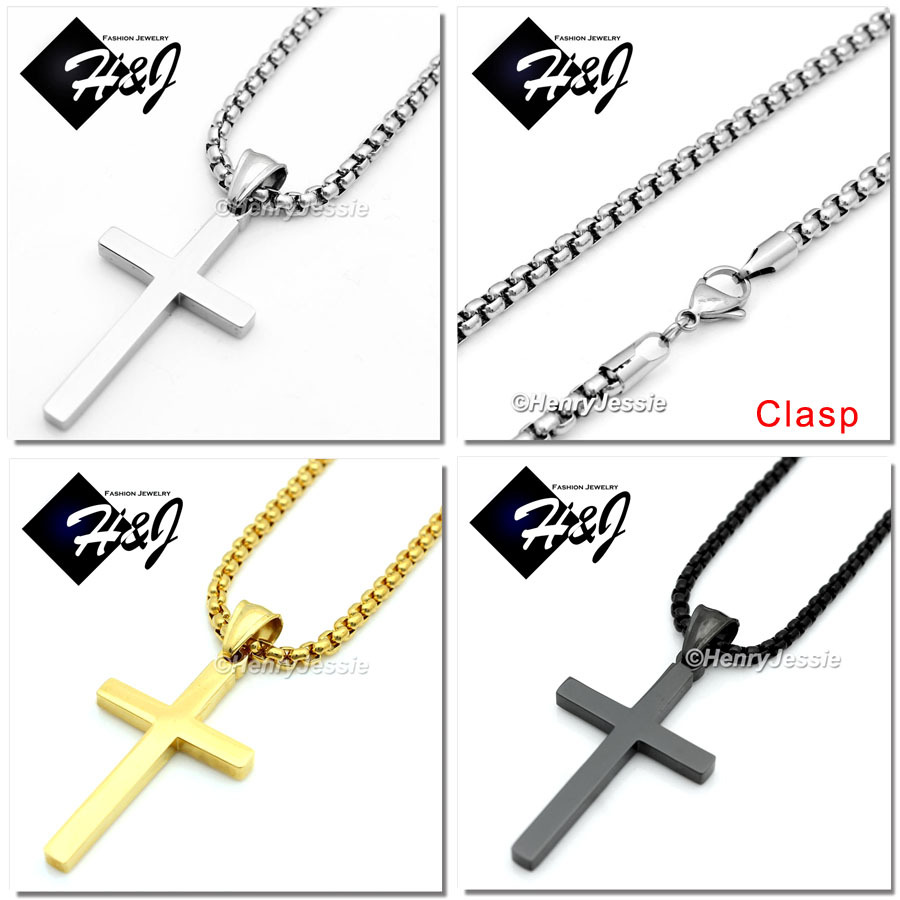 18-36″MEN Stainless Steel 3mm Gold/Silver/Black Plated Box Chain Cross Pendant*S