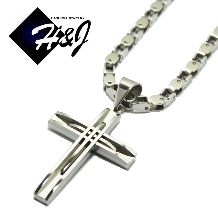 18-40″MEN’s Stainless Steel 5mm Silver Box Bike Chain Necklace Cross Pendant*A