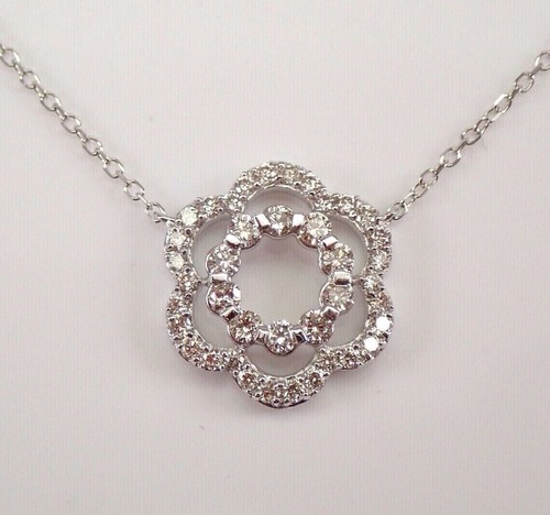1Ct Real Moissanite Round Flower Pendant 14K White Gold Plated 18 Free Chain