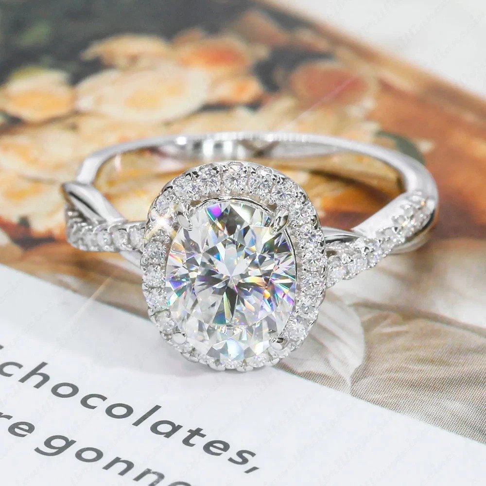 2.18Ctw Oval Moissanite Twisted Shank Engagement Ring in 14K White Gold