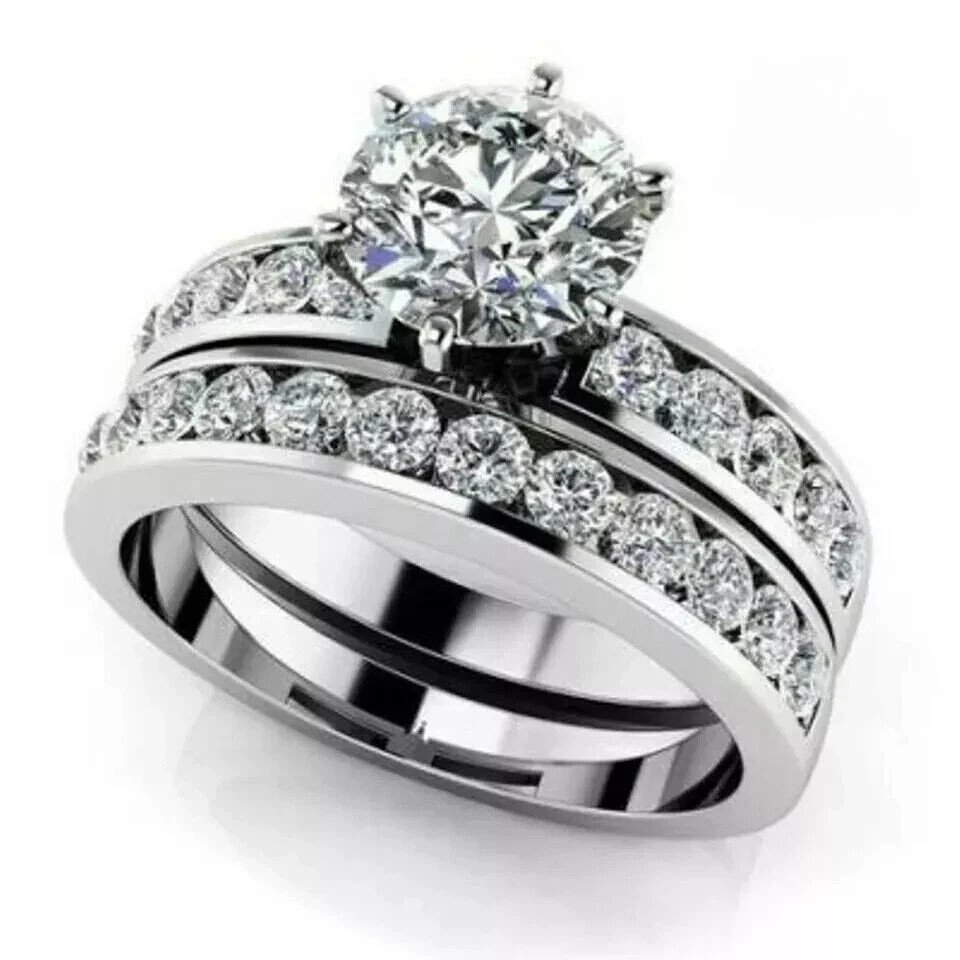 2.50 CT Round Cut Moissanite Bridal Set Engagement Ring Solid 14K White Gold