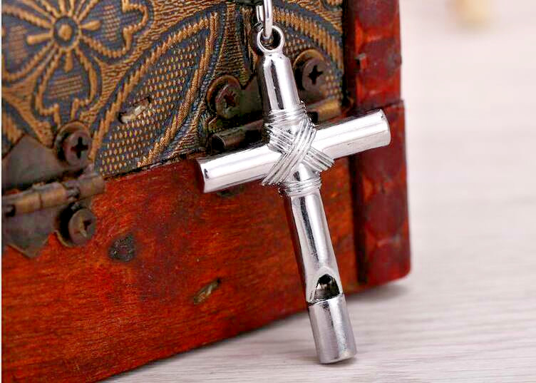 2″ large PROTECTION WHISTLE CROSS JESUS pendant 24″ Sterling Silver 925 necklace