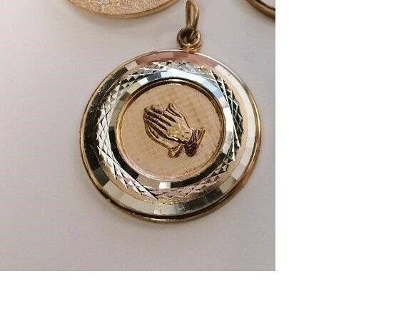 2 tone PRAY BIBLE HAND RELIGIOUS gold pendant 20″ Sterling Silver 925 necklace