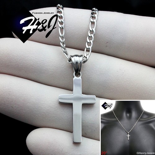 20″MEN Stainless Steel 2mm Silver Figaro Chain Necklace Small Cross Pendant*P67