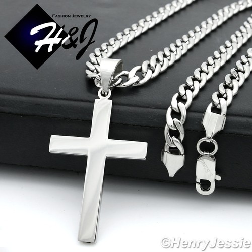 20″MEN Stainless Steel 6mm Silver Cuban Curb Necklace Plain Cross Pendant*P64