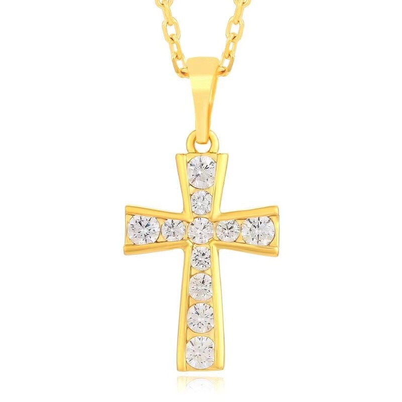 24K Gold Plated Vintage Zircon Cross Necklace Religious Jewelry for women