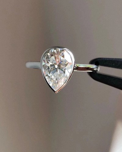 2CT Pear-Cut VVS1 Moissanite Bezel Engagement Ring 14K White Gold