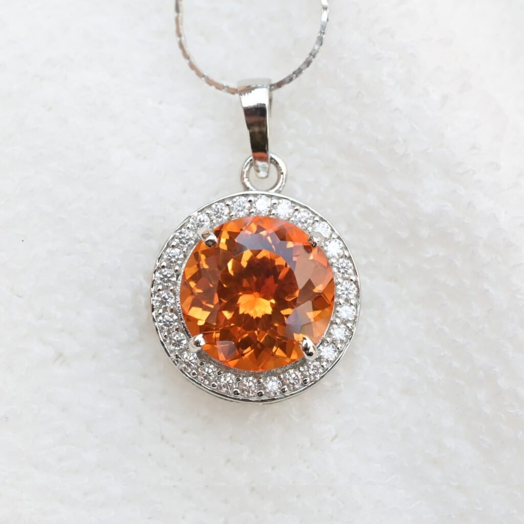 31.85 Ct Natural Orange Sapphire Pendant – Certified Gemstone in Silver 925