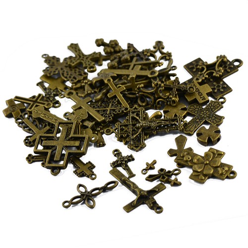 50pcs Antique Bronze Cross Religious Necklace Pendants Charms Findings Craft