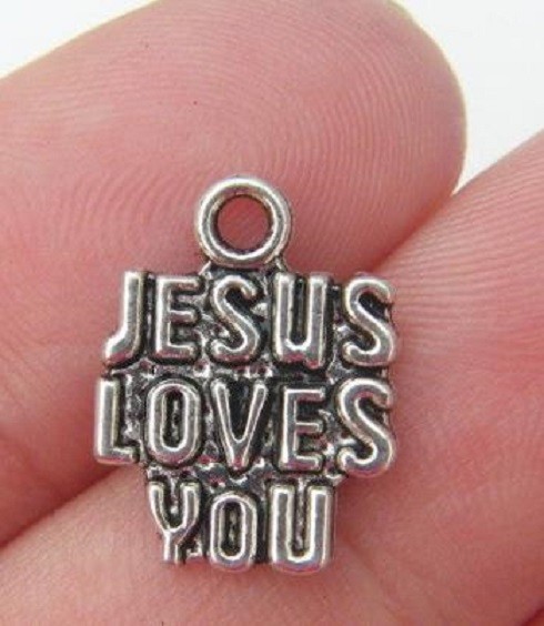 925 STERLING silver 18″ chain necklace JESUS LOVE YOU pendant charm FREE box
