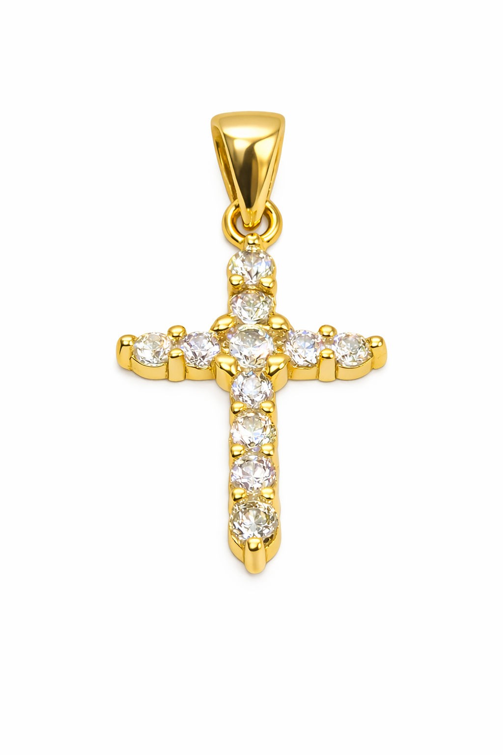 925 Sterling Silver Cubic Zirconia Cross Gold Plated Pendant 22mm