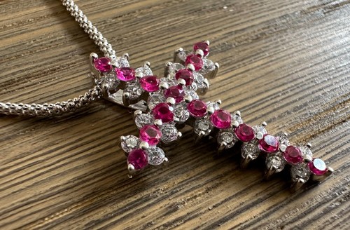 925 Sterling Silver High Quality Cubic Zirconia RED Cross Charm Pendant 12