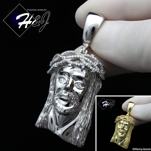 925 STERLING SILVER ICY BLING CZ GOLD PLATED/SILVER 3D JESUS FACE PENDANT*SP343