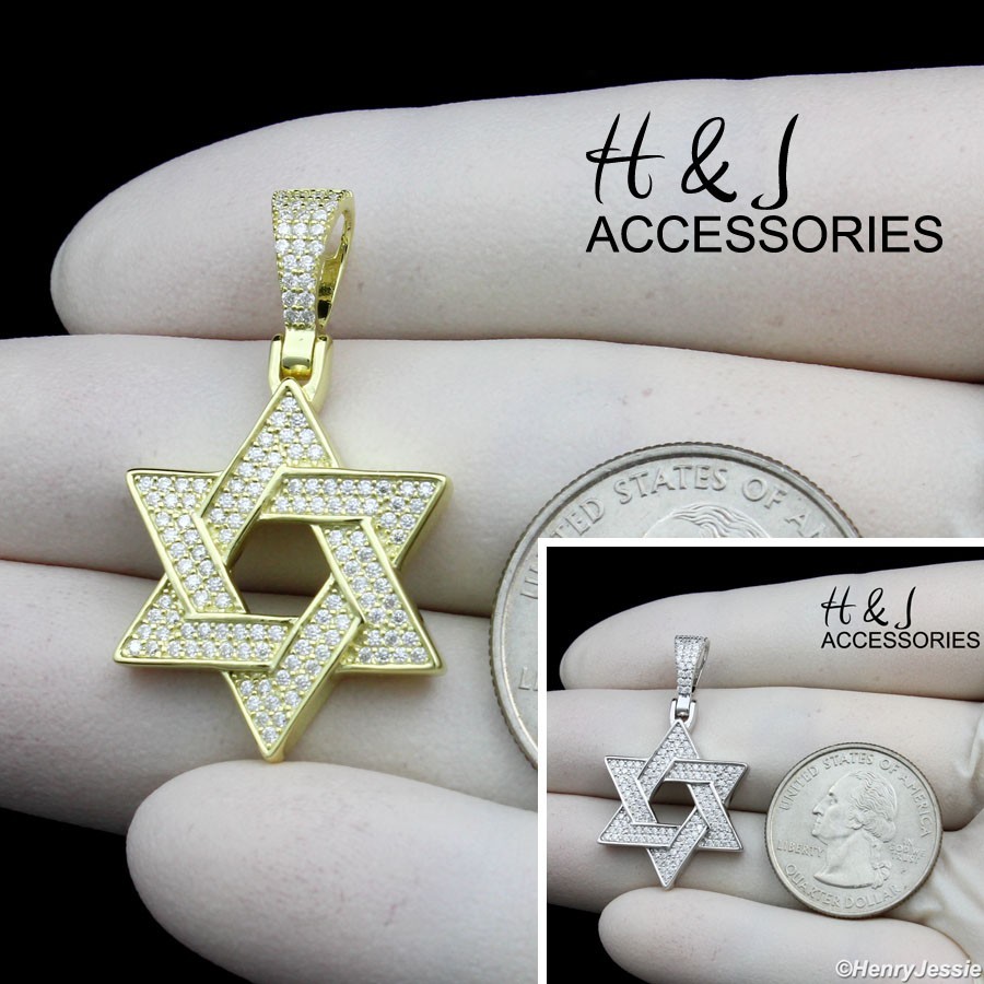 925 STERLING SILVER MOISSANITE GOLD PLATED/SILVER STAR OF DAVID PENDANT*AMP546