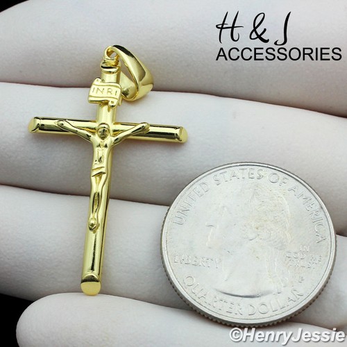 925 STERLING SILVER PLAIN GOLD PLATED JESUS CHRIST CROSS CRUCIFIX PENDANT*GP213