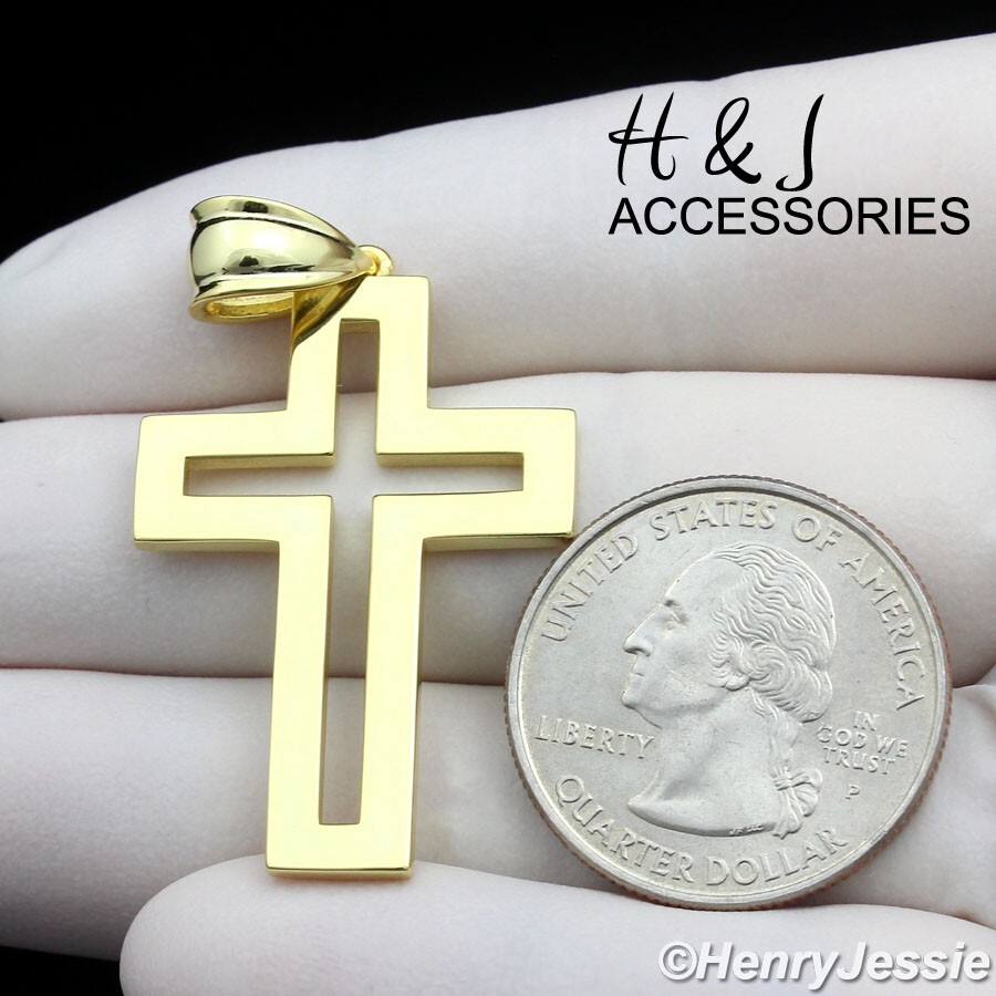 925 STERLING SILVER PLAIN SIMPLE 3D GOLD PLATED HOLLOW DOUBLE CROSS PENDANT*G422