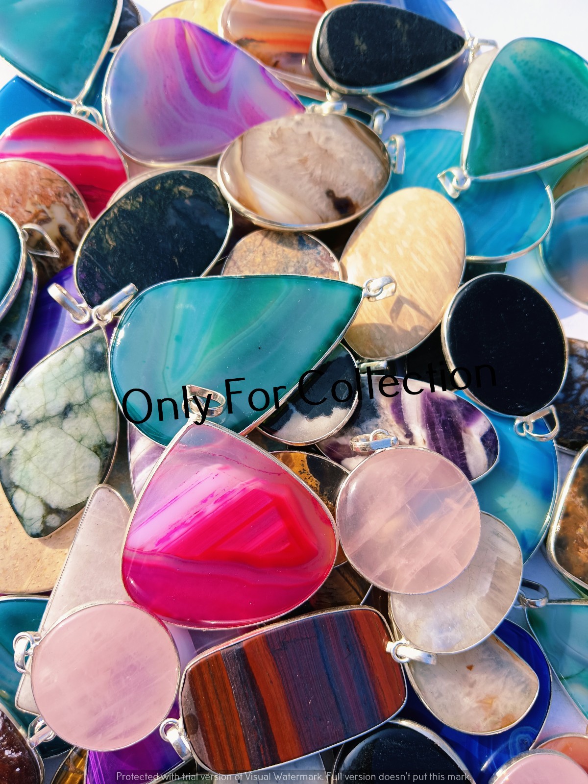 925 Sterling Silver Plated Natural Big Agate & Mix Gemstone Pendant Lot Jewelry
