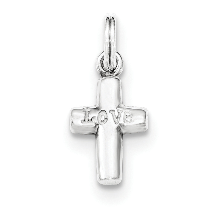 .925 Sterling Silver Solid Love Inscribed Mini Cross Charm