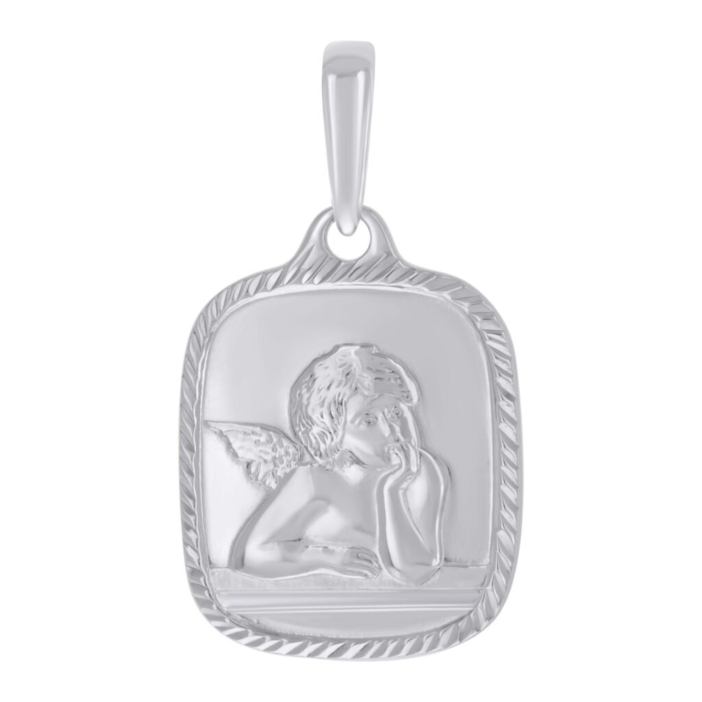 925 Sterling Silver Unisex Sitting Angel in D/C Frame Pendant Religious Charm