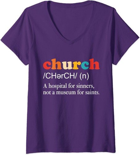 Church Funny Definition Apparel Hospital Siners Ladies’ V-Neck Tshirt