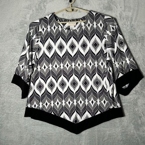 Alfred Dunner Blouse Womens 3X Geometric Silky Pullover 3/4 Sleeves Tunic Top