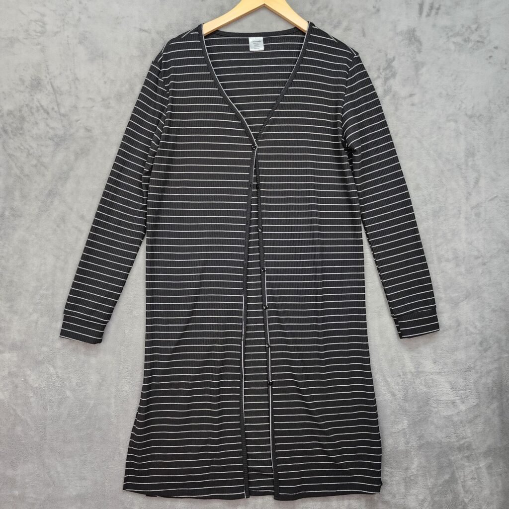Allthreads Cardigan Women MEDIUM Ribbed Knit Long Black Striped Church Work Wear