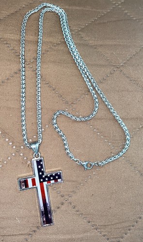 American Flag Patriotic Cross Pendant Necklace Religious Jewelry.