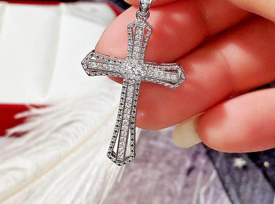 AUSTRIAN CZ CRYSTAL CROSS Pendant On 18″ 925 Sterling Silver Necklace Women