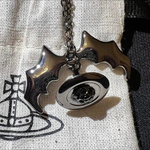 Authentic Vivienne Westwood Black Silver Bat 3D Orb Necklace Chain