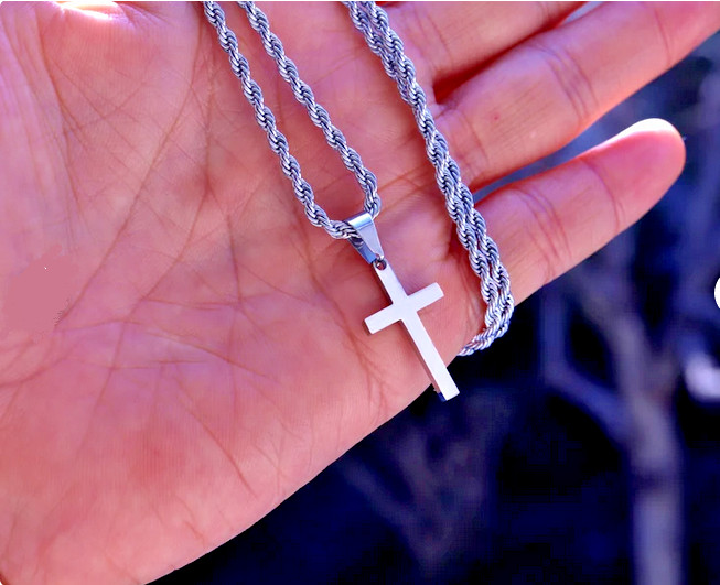 Big CROSS RELIGIOUS Pendant on 24″ 925 Sterling Silver Plated 3mm ROPE Chain Men