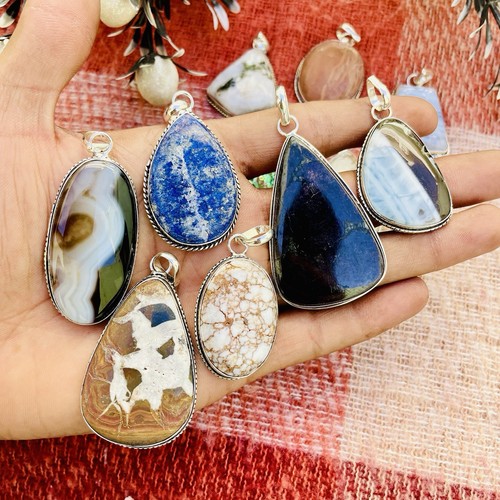 Boho Agate & Mix Gemstone Pendants 925 Silver Plated,Handmade Jewelry For Women~