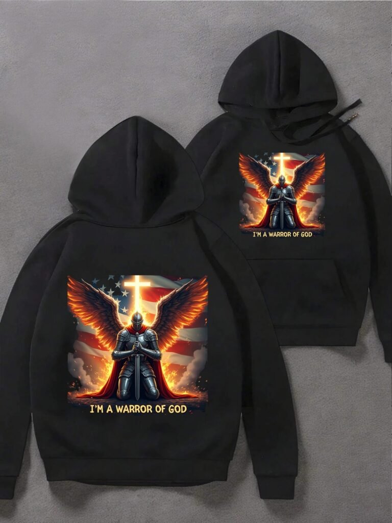 Men’s Heavyweight Hoodie Christian Faith Apparel Warrior of God Design Double-Si