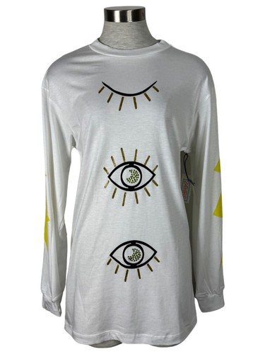 24HRS Evil Eye Rhinestone Spiritual Long Sleeve Tunic White Goth T Shirt Price : 12.99 – 6.37 Ends on : View on eBay