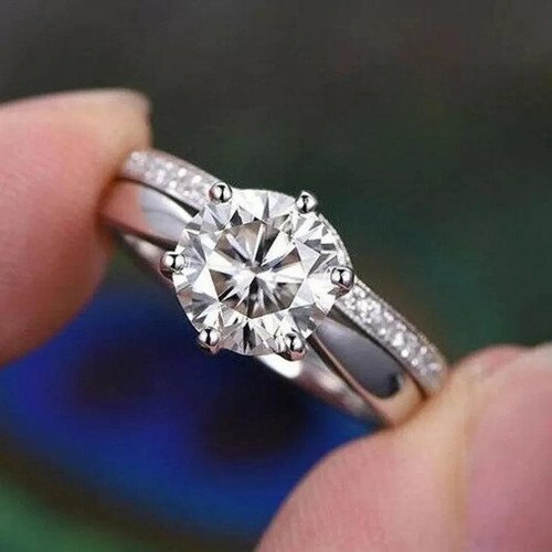 Solid 14K White Gold Moissanite Bridal Set Engagement Ring 2 CT Round Cut VVS1 Price : 244.90 Ends on : View on eBay