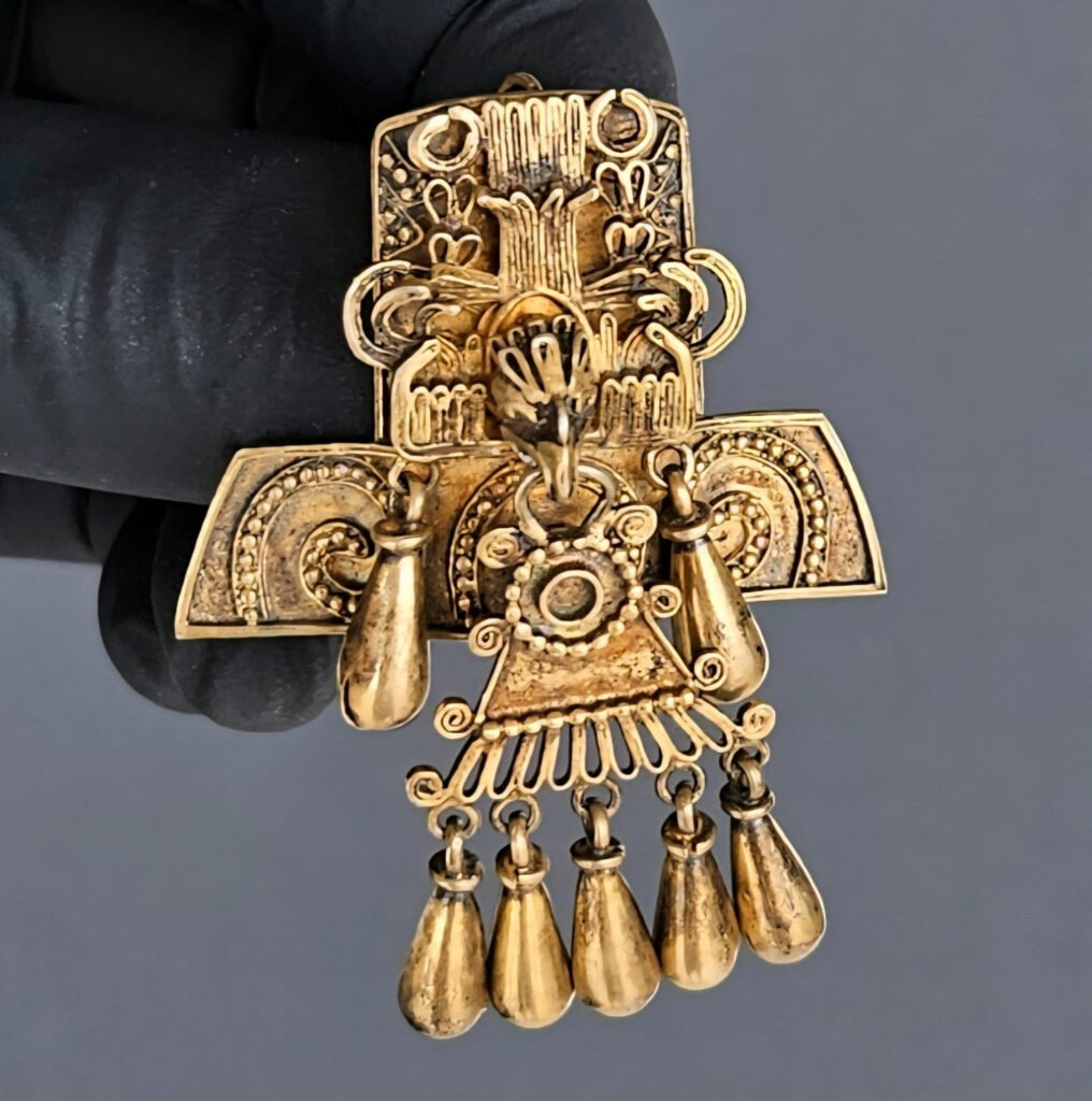 Vintage Aztec Mixtec 925 Sterling Silver Sun God Zoomorphic Brooch Pendant Read More »