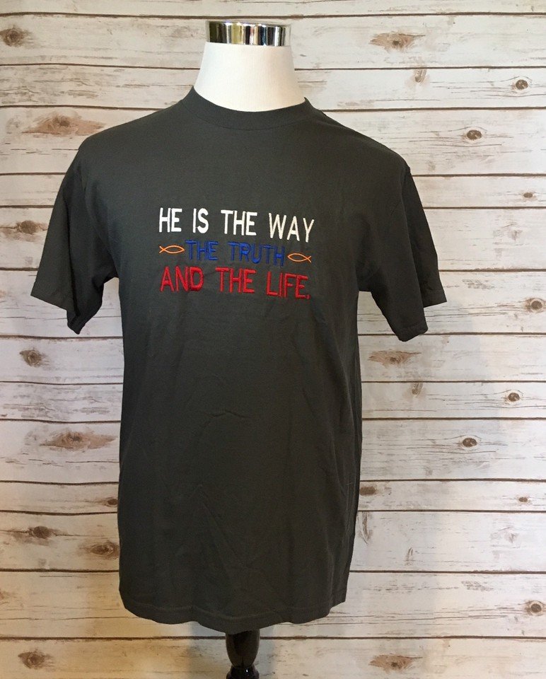Unisex Christian T Shirt Medium Gray He Is The Way The Truth And The Life NWOT Price : 7.95 Ends on : View on eBay