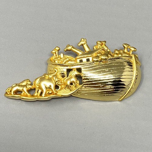 Noahs Ark Brooch Gold Tone Textured Religious Bible Story Animal Zoo Large 3′ Price : 14.99 Ends on : View on eBay