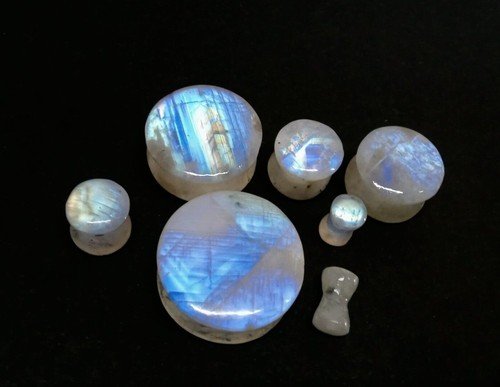 Pair Rainbow Moonstone Double Flare Plugs Earrings Gauges Tribal Body Jewelry Price : 36.59 Ends on : View on eBay