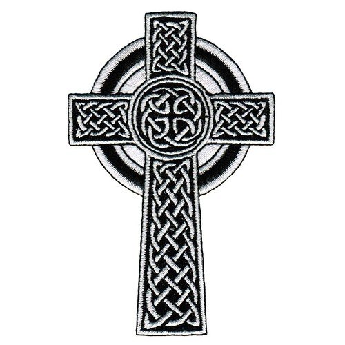 CELTIC CROSS PATCH – WHITE embroidered iron-on IRISH CHRISTIAN RELIGIOUS EMBLEM