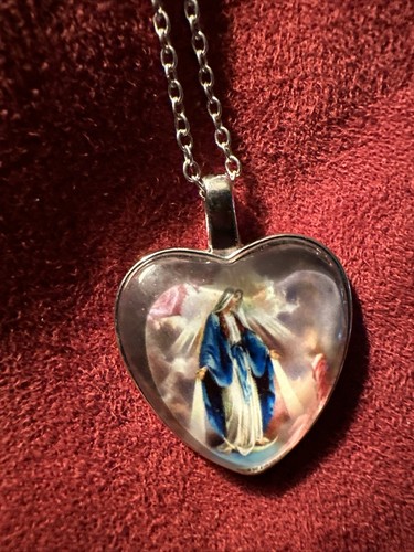 Colorful Heart Shaped Pendant Necklace With The Blessed Mother