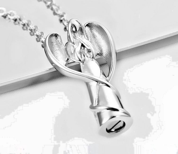 CREMATION ASHES ANGEL WING MEMORIAL On Pendant 18″ 925 Sterling Silver Necklace