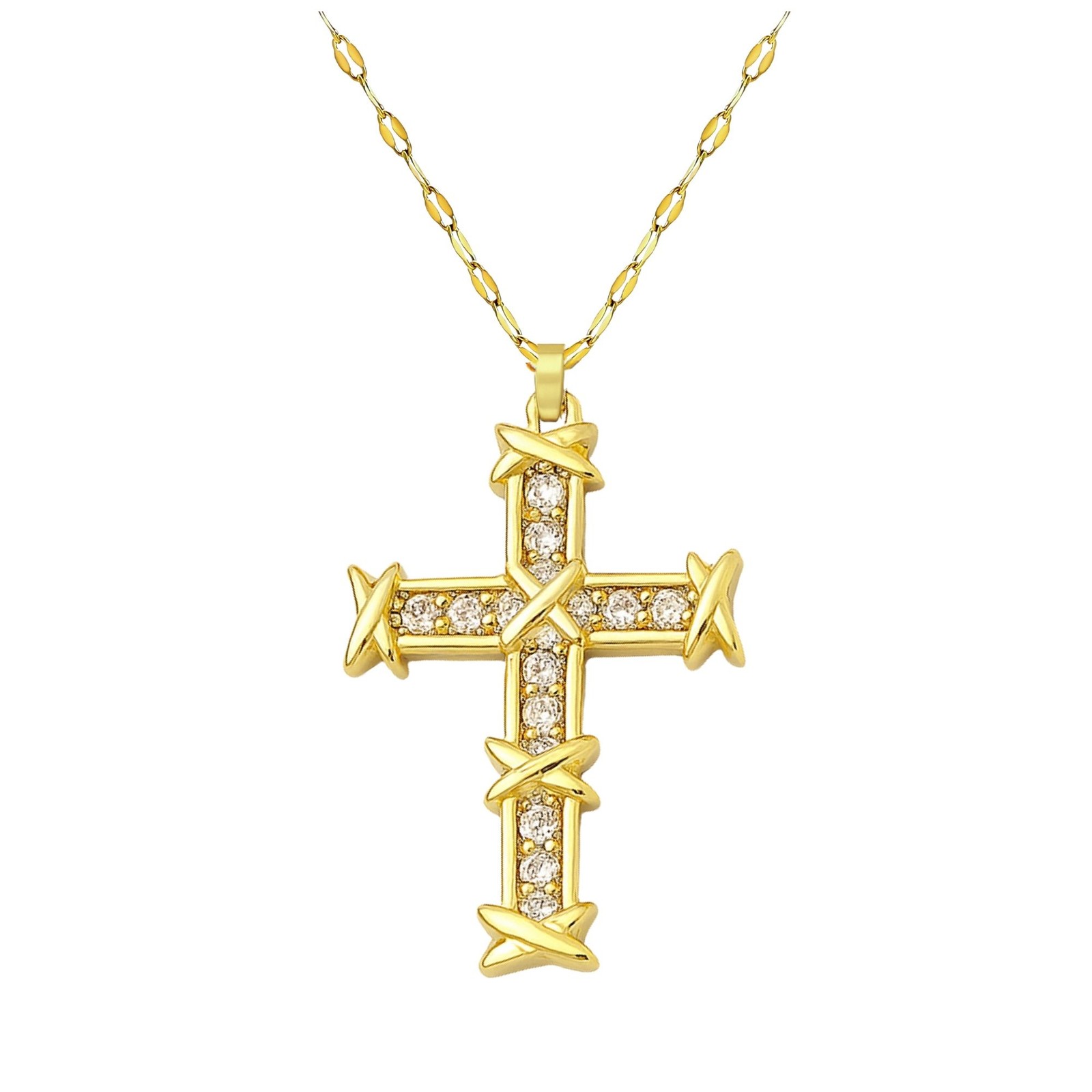 Cross Pendant Necklace for Women Religious Jewelry CZ Gold Plated Stainless S…